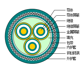 額定電壓3.6/626/35kV()芯交聯(lián)聚乙烯絕緣非阻燃、阻燃及無(wú)鹵阻燃三芯電力電纜
